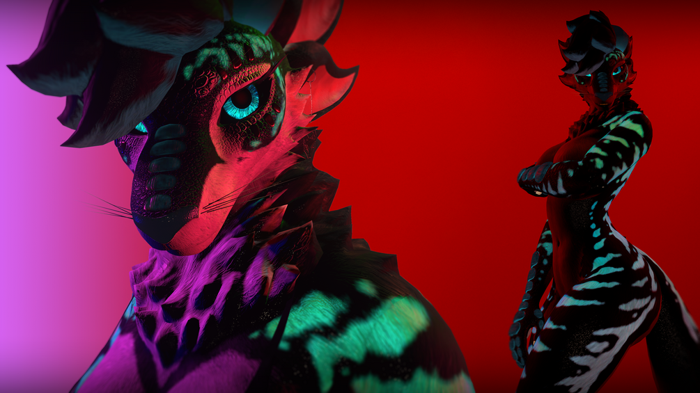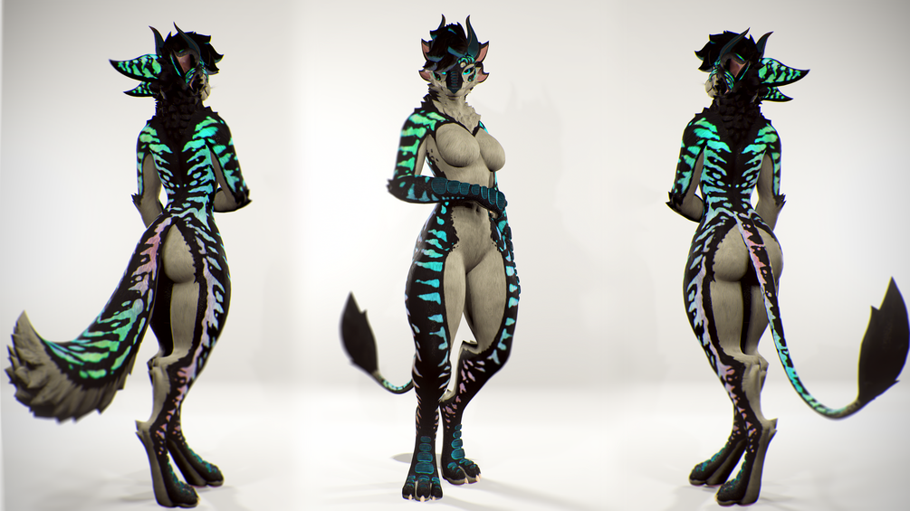 This Texture pack covers the Body, Scales, Tail-Alt, Hair, and Eyes of Neo's Origin Species VR Avatar. It includes color maps, emissions, normal, metallic, and smoothness maps for all materials.